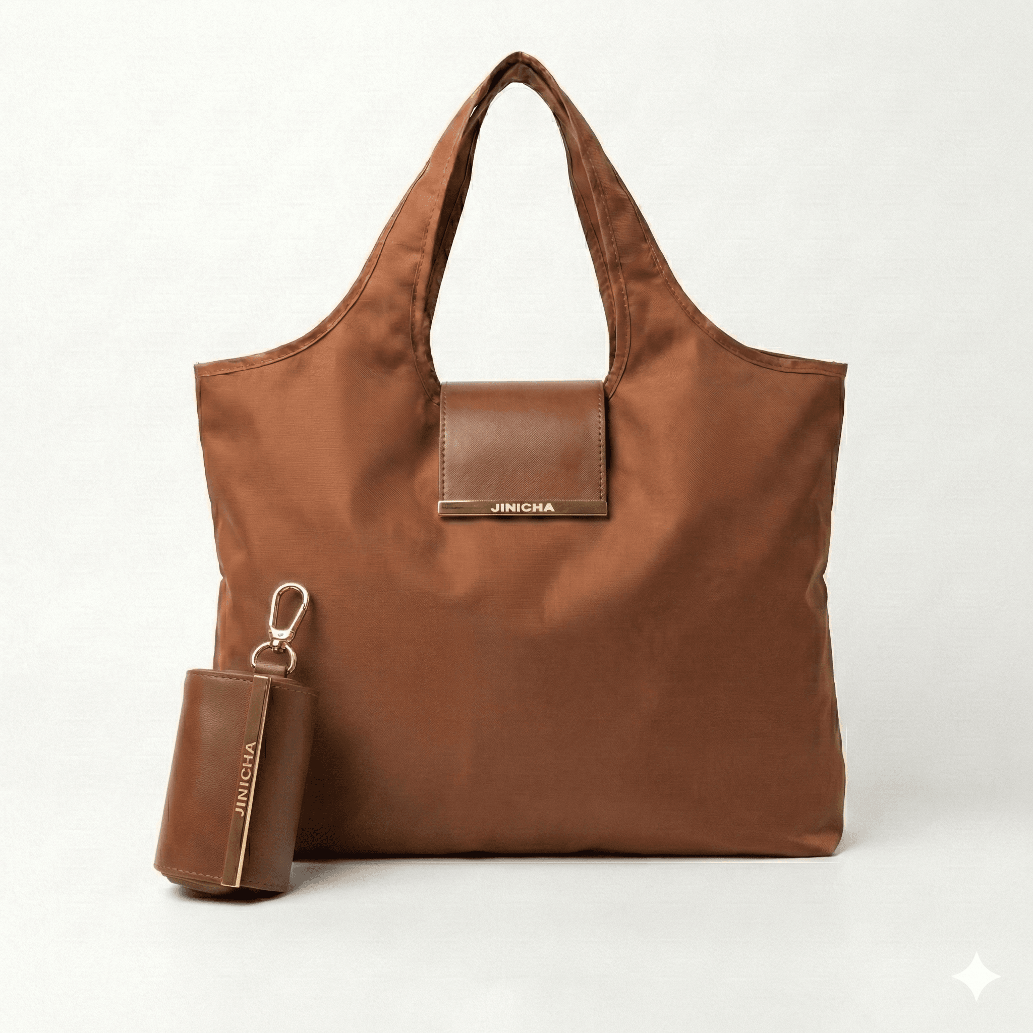 Kahverengi Katlanabilir Bez Çanta(Altın Tokalı) – Çantaya Takılabilir, Hafif ve Pratik Tasarım - Jinicha