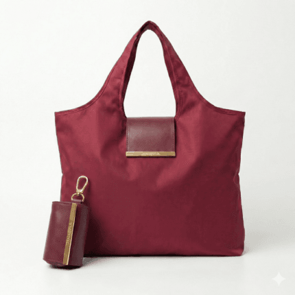Bordo Katlanabilir Bez Çanta(Altın Toka) – Çantaya Takılabilir, Hafif ve Pratik Tasarım