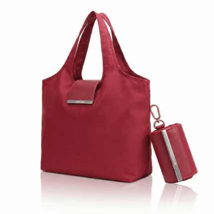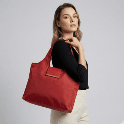 Kırmızı Katlanabilir Bez Çanta(Altın Toka) – Çantaya Takılabilir, Hafif ve Pratik Tasarım