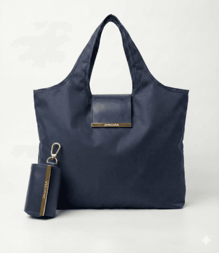 Lacivert Katlanabilir Bez Çanta(Altın Toka) – Çantaya Takılabilir, Hafif ve Pratik Tasarım