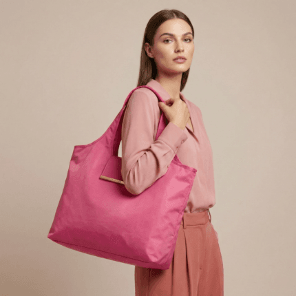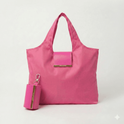 Pembe Katlanabilir Bez Çanta(Altın Toka) – Çantaya Takılabilir, Hafif ve Pratik Tasarım