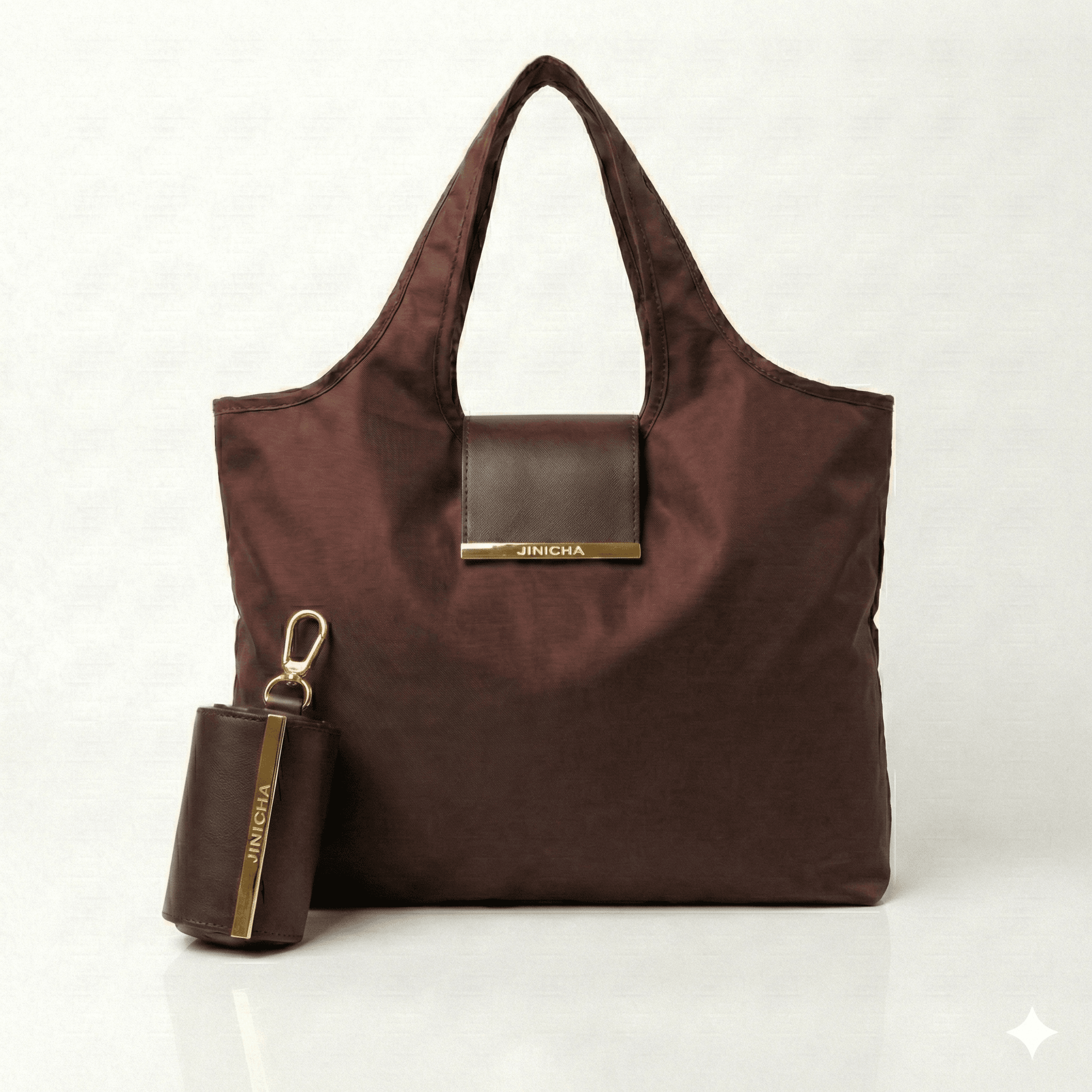 Koyu Kahverengi Katlanabilir Bez Çanta(Altın Toka) – Çantaya Takılabilir, Hafif ve Pratik Tasarım - Jinicha